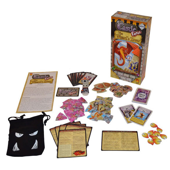 The Wizard’s Tower is the expansion for Castle Panic. A friendly Wizard, Thalgar, has joined the battle. As long as his Tower stands, you and your friends have access to a new deck of powerful magic spell cards.