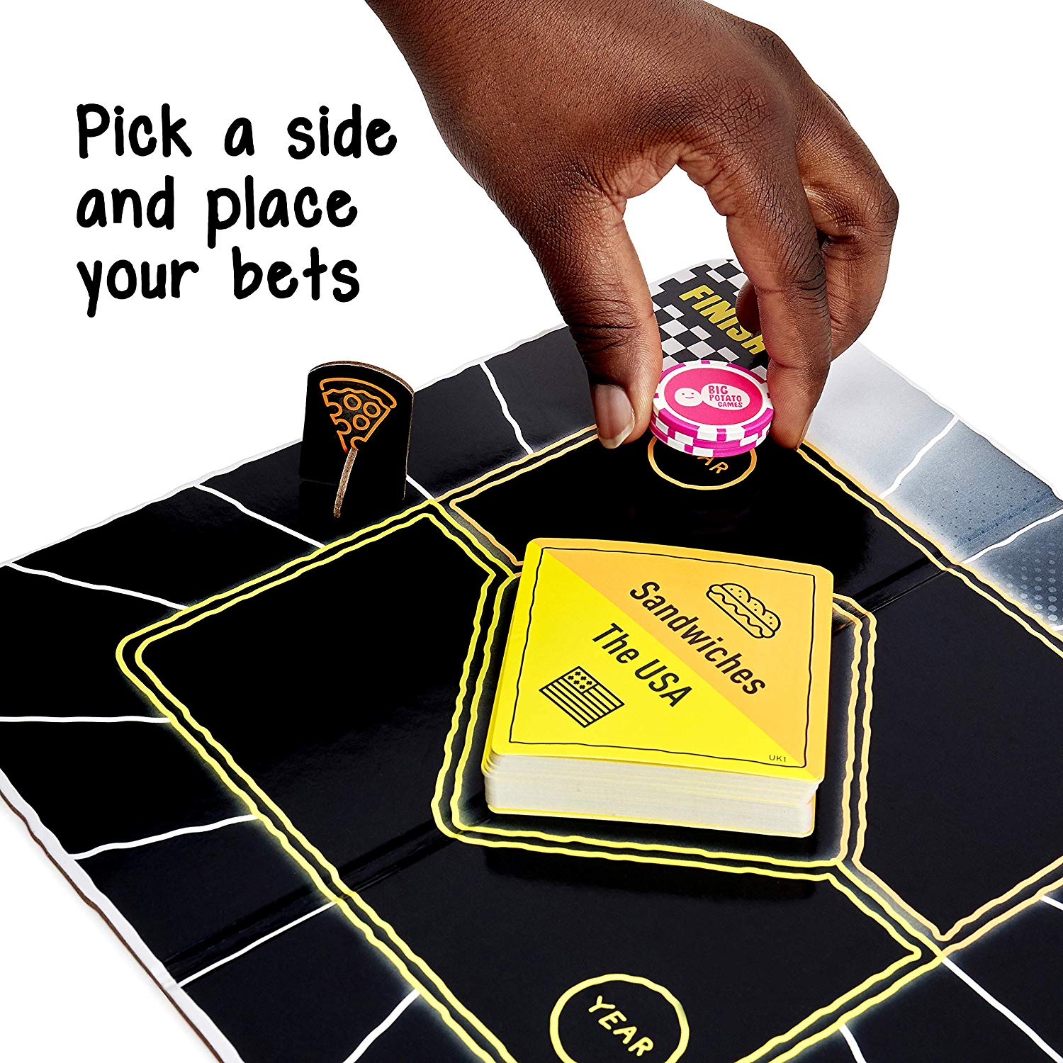 The more you wager, the more you win and the faster you move around the track – but get it wrong and you’ll be heading backward in a hurry. The first team to cross the finish line wins!