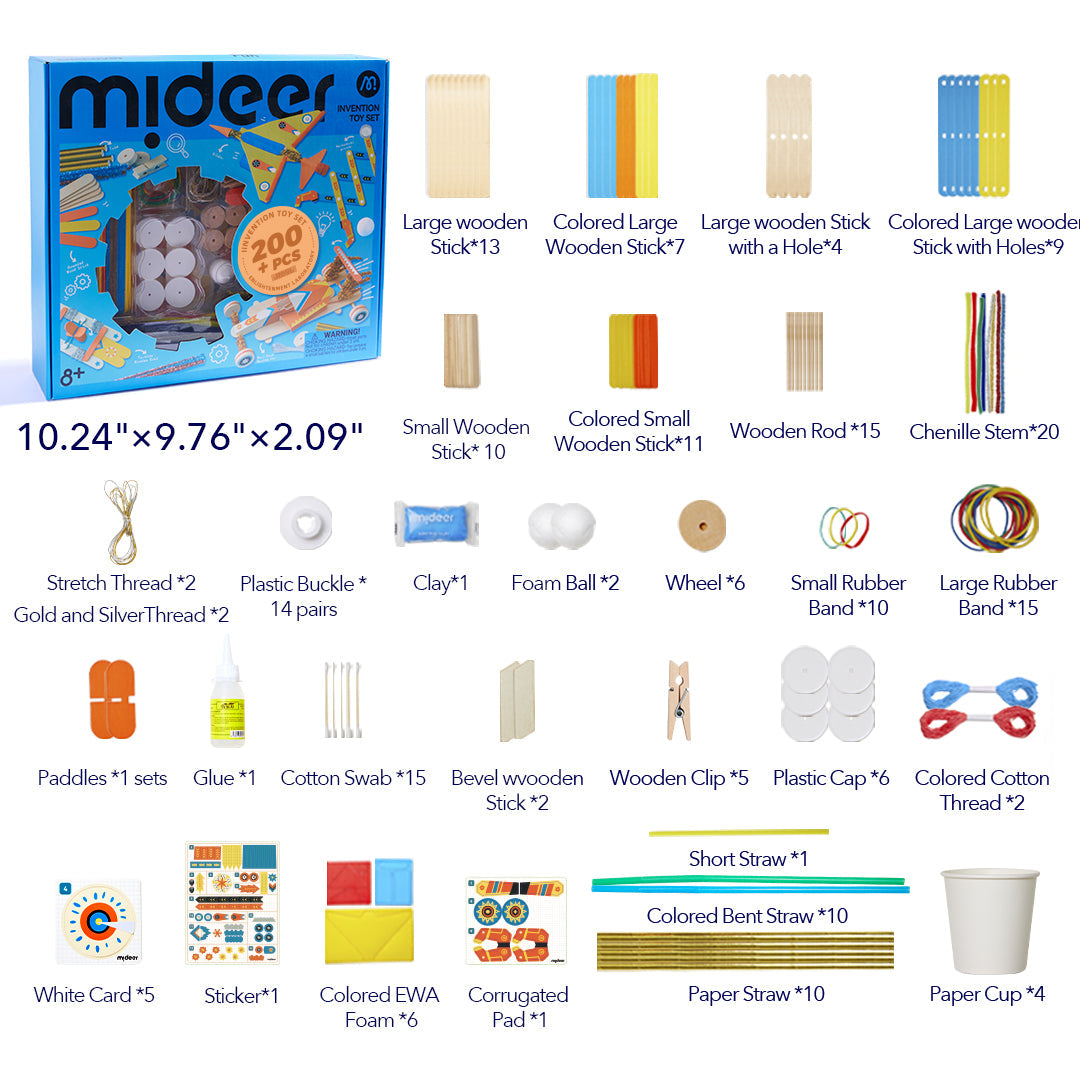 "Invention Toy Set" is a versatile and educational crafting kit designed to spark curiosity and nurture a love for science and engineering. This set empowers children to build and explore a variety of mechanisms, from simple toys to complex machines.