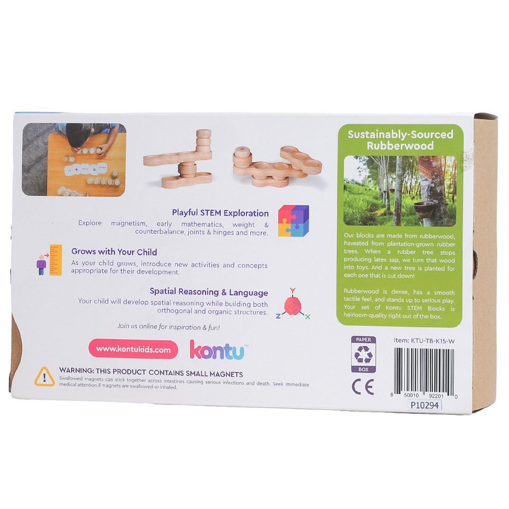 Patrick Greenwood, creator of Kontu, winner of the 2020 Parents' Choice Awards Gold Award, set out to design toys that would equip playful young learners with early skills in STEM and maths development. Beautifully crafted in Thailand from sustainable rubberwood and rare earth magnets, Kontu are natural, tactile, educational toys that will engage the whole family in learning through play. The wood used to make Kontu is harvested from rubberwood trees that no longer produce latex and would otherwise be burnt, and new trees are planted to replace them. The whole family will love to explore these engaging and creative toys.