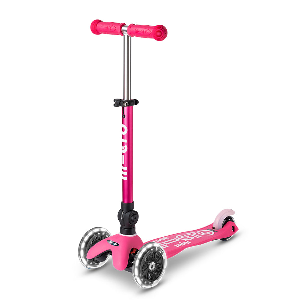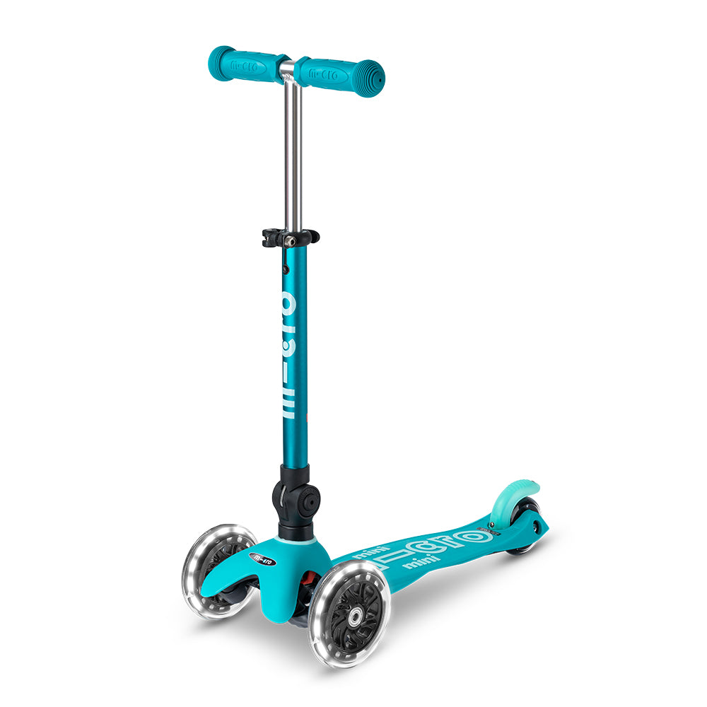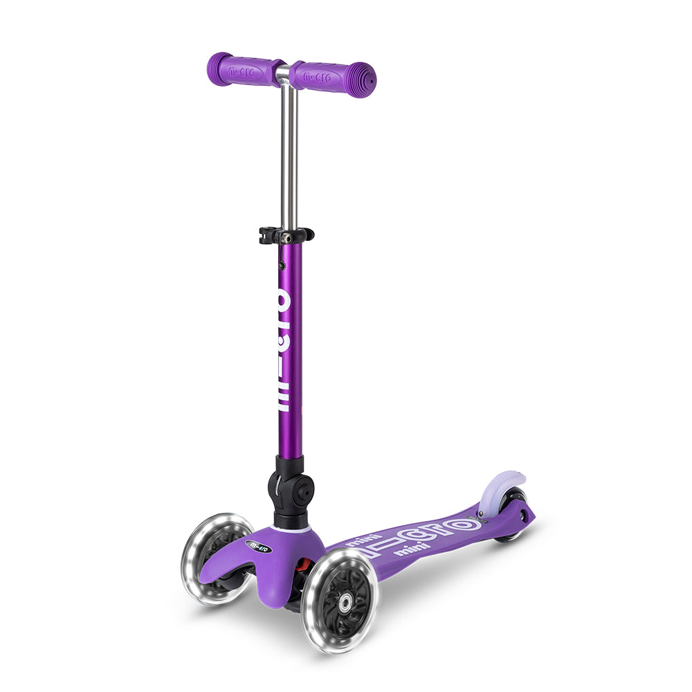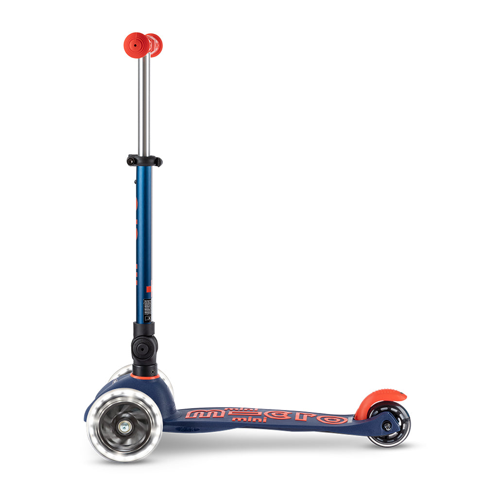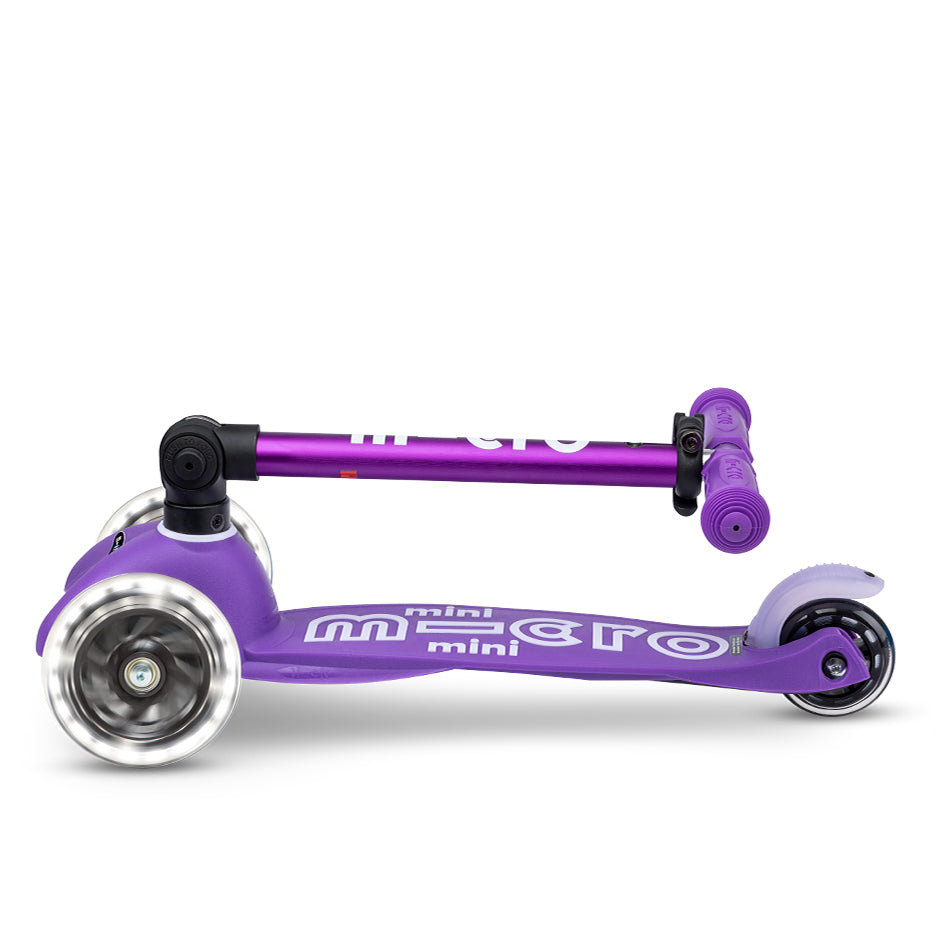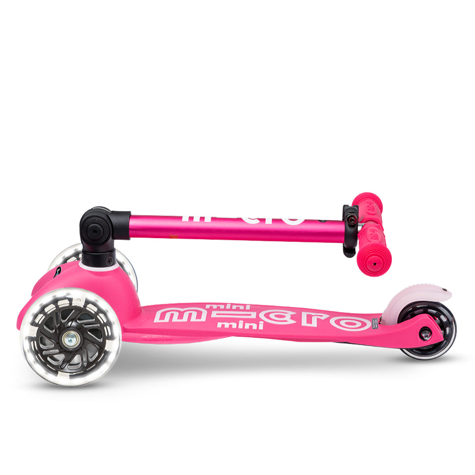 The classic scooter for kids has been made even more compact now and features an intuitive folding mechanism that makes stowing and transporting the scooter a breeze. The cool LED wheels not only provide a stylish look, but also offer additional safety in the dark. The patented steering system promotes balance, coordination and motor skills of your child and the anti-slip coating on the footboard ensures a safe stand. With the height-adjustable handlebar, the scooter can be perfectly adjusted to your child's body size for maximum riding comfort. Let your child experience the freedom of scooter riding in a whole new way with the Mini Micro Deluxe Foldable LED!