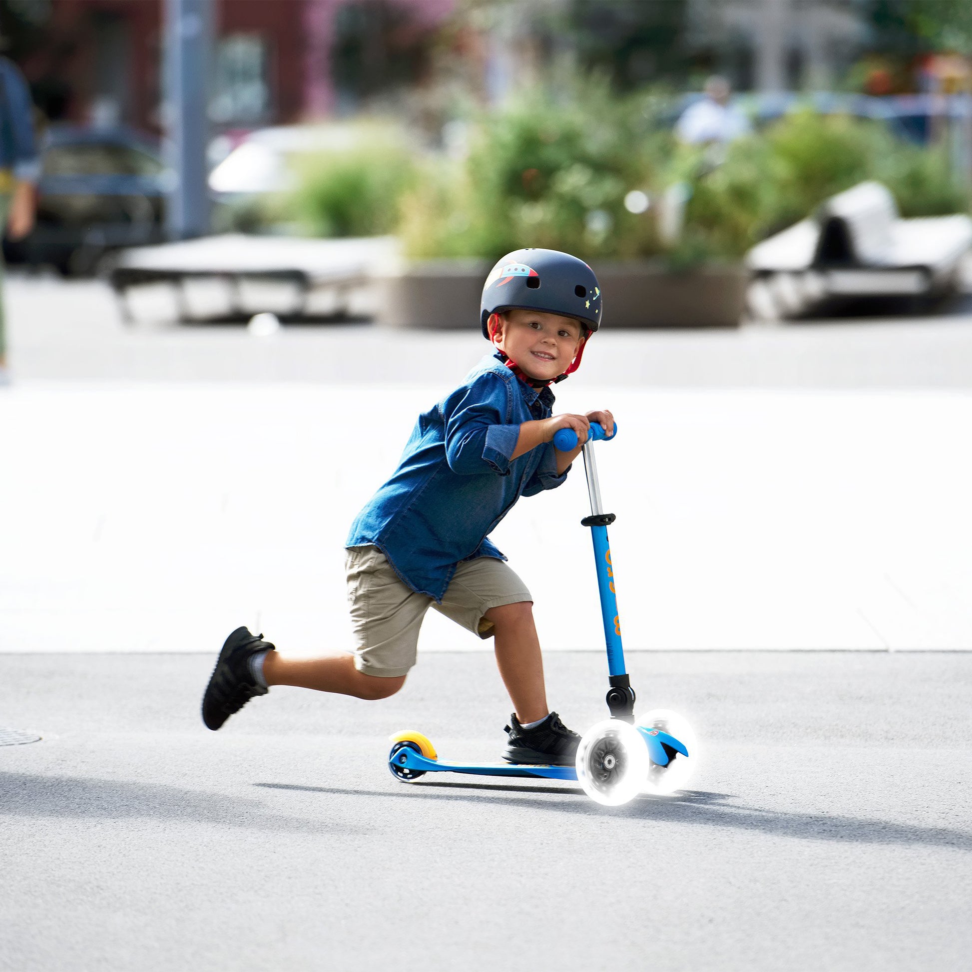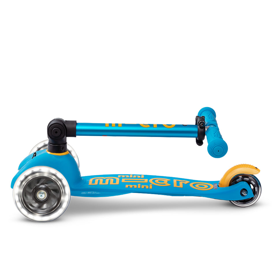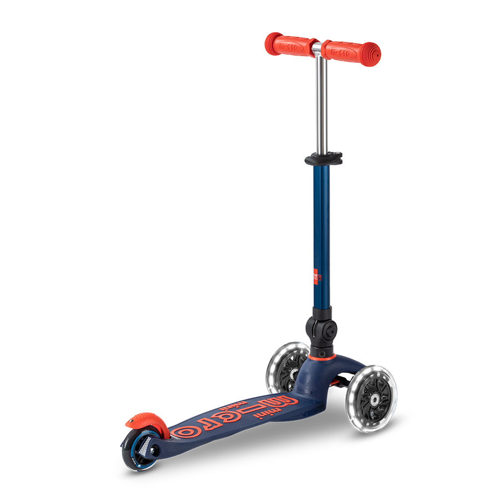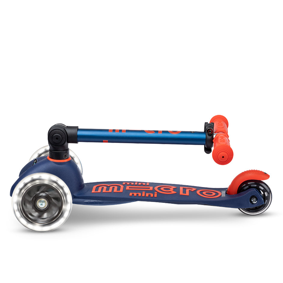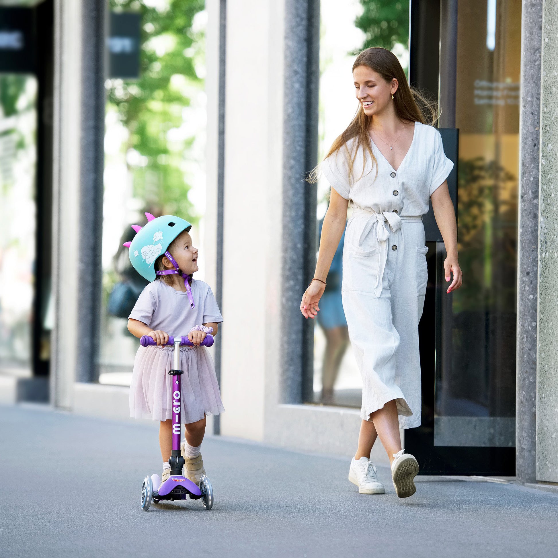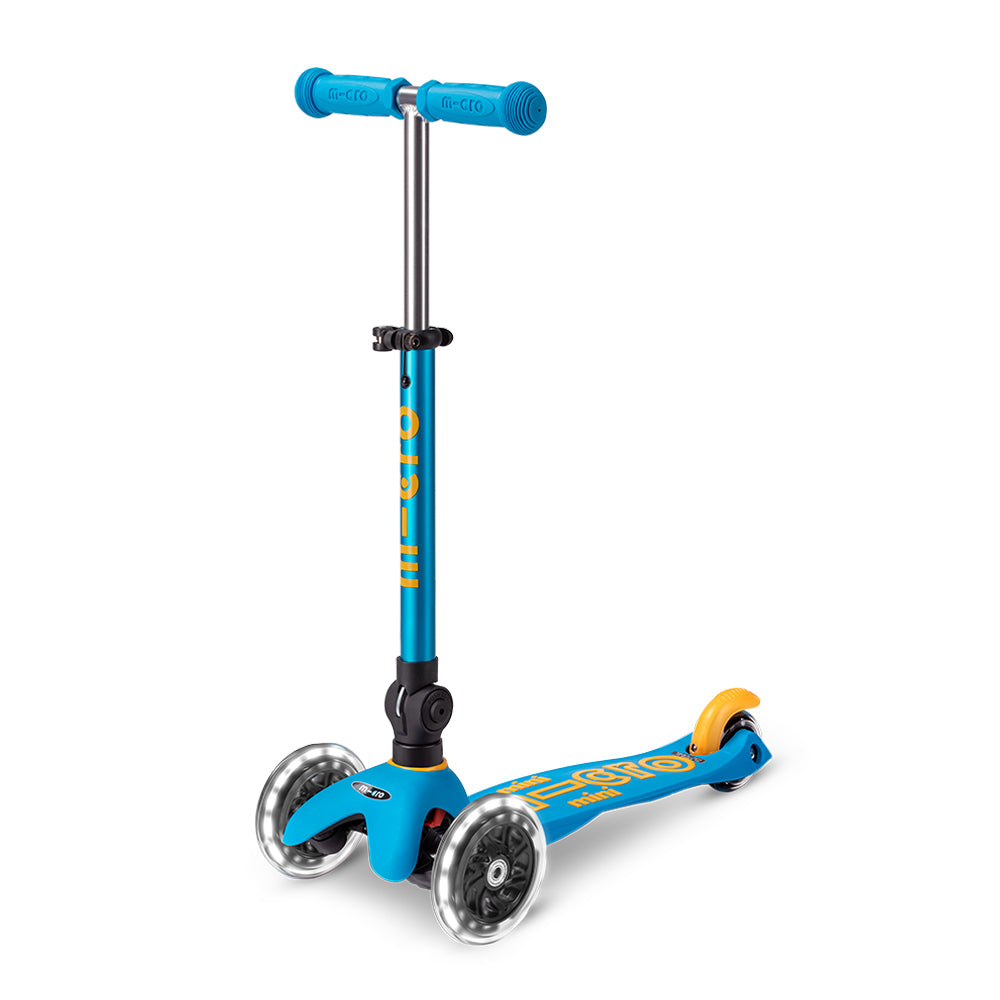 The classic scooter for kids has been made even more compact now and features an intuitive folding mechanism that makes stowing and transporting the scooter a breeze. The cool LED wheels not only provide a stylish look, but also offer additional safety in the dark. The patented steering system promotes balance, coordination and motor skills of your child and the anti-slip coating on the footboard ensures a safe stand. With the height-adjustable handlebar, the scooter can be perfectly adjusted to your child's body size for maximum riding comfort. Let your child experience the freedom of scooter riding in a whole new way with the Mini Micro Deluxe Foldable LED!