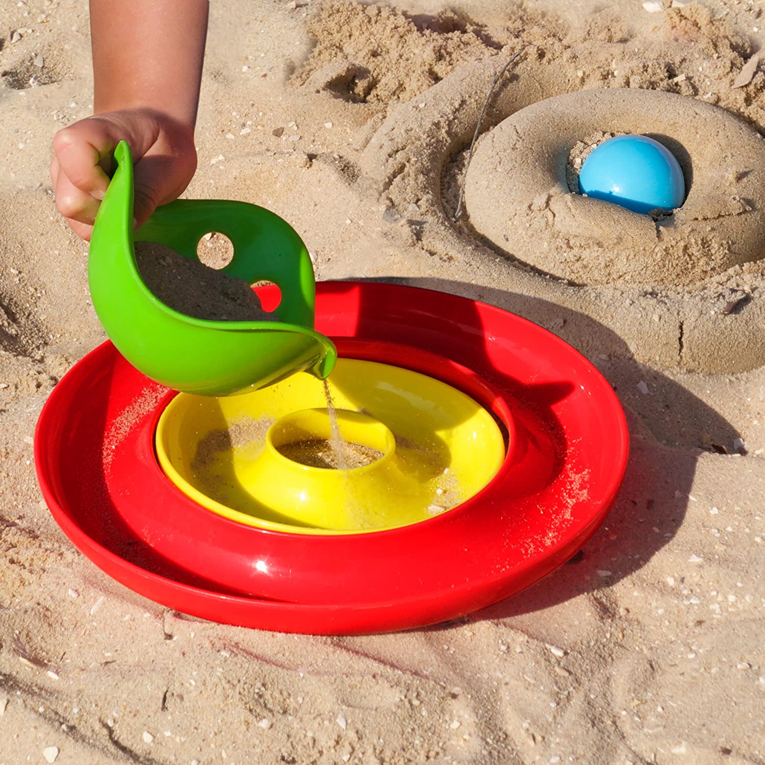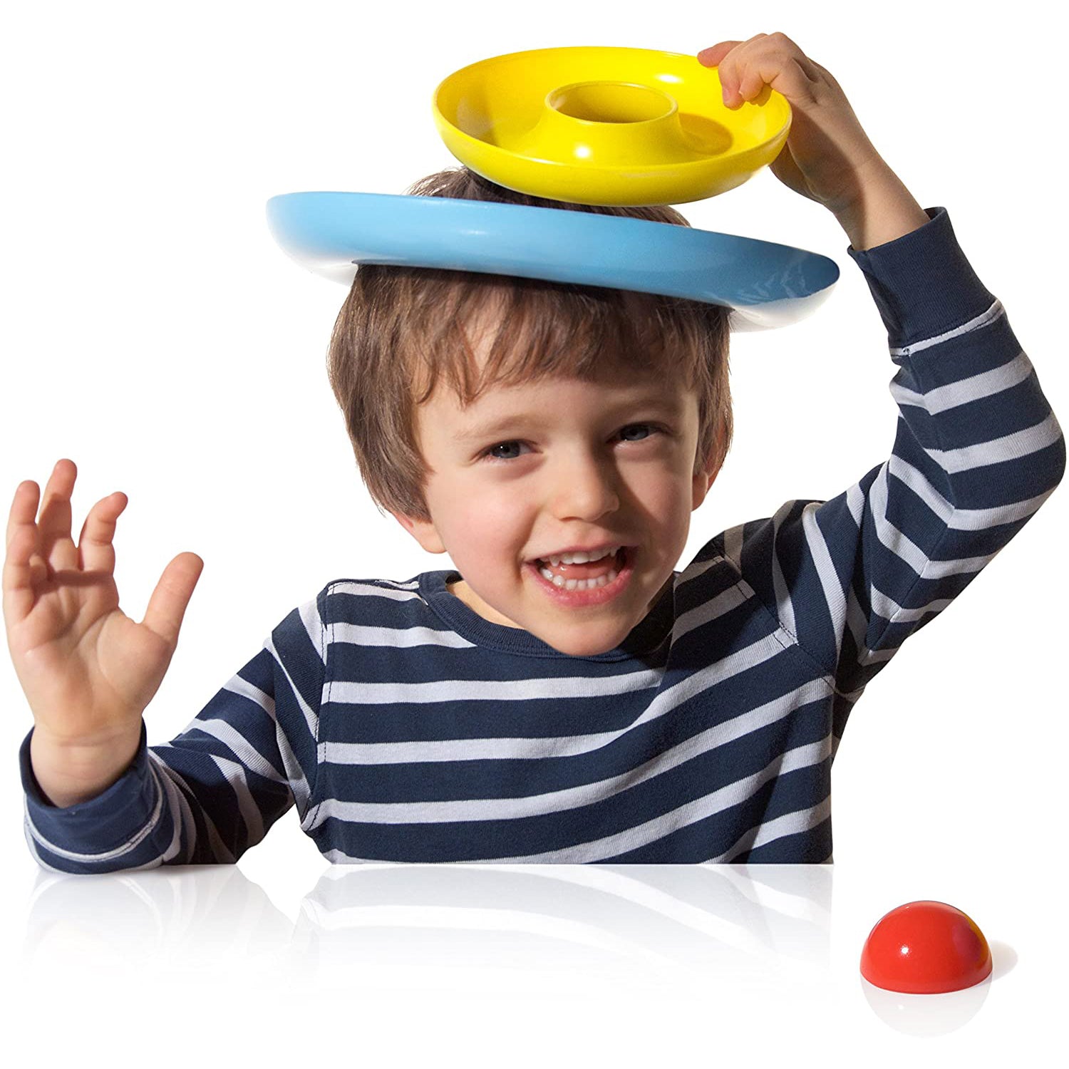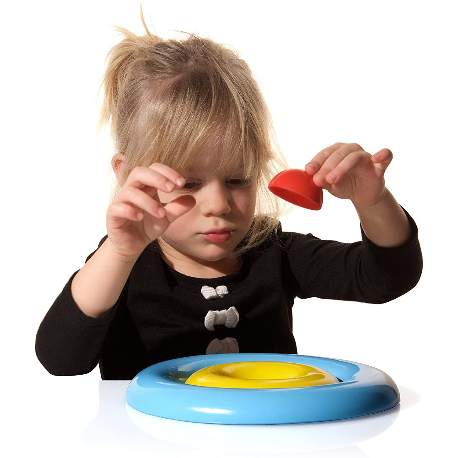 Nello is a magic object and versatile, open-ended toy that quickly becomes an indispensable accessory for countless play activities, indoors and outdoors. It is a color puzzle, a nesting toy, a marble run, a floating island in the bath or a sand toy at the beach. You can roll, spin, and swing the rings, throw and catch them. Use them as targets for games like tiddlywinks or as beautiful props for role and pretend play.
