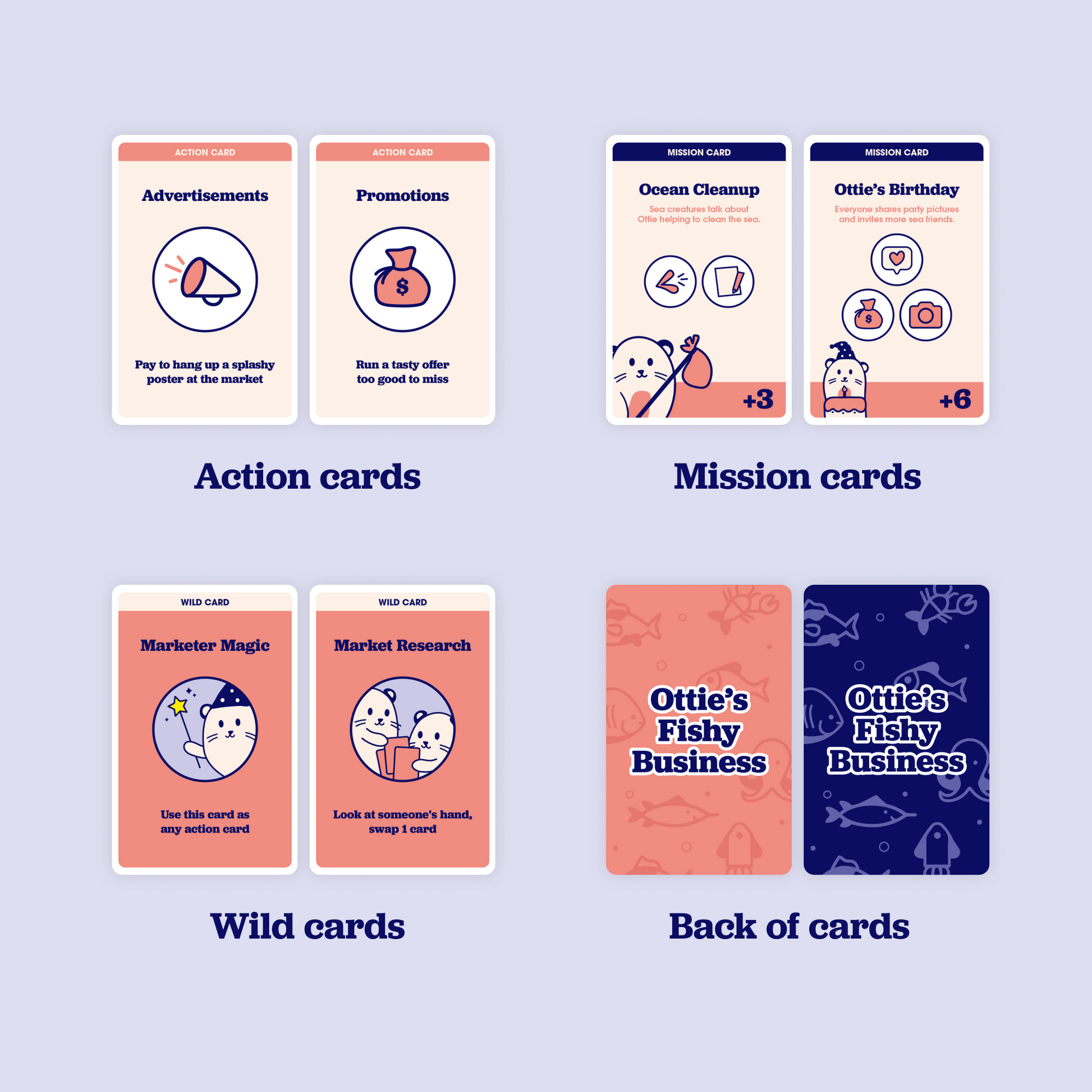 Designed for children aged 7 and older, Ottie’s Fishy Business is one of Singapore’s first card games that teaches real marketing concepts through play. It introduces concepts like word of mouth, advertisements, A/B testing, and more through fast-paced, icon-matching gameplay.
