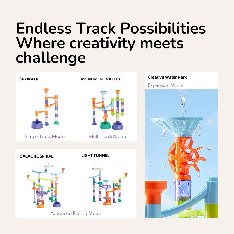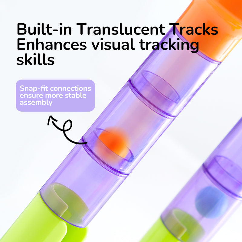 The Track Ball Building Blocks set combines building fun with educational value! Kids can create their own marble track and enjoy the excitement as the balls zoom through curves, tunnels, and ramps!