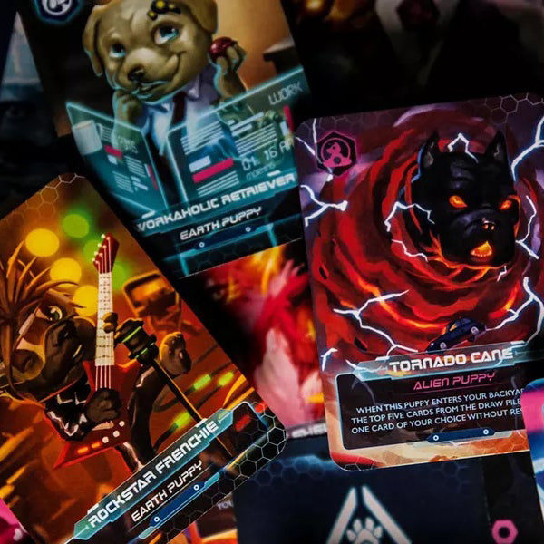 Alien Puppies is a 2-5 player strategic card game adventure with Cyberpunk Puppies.