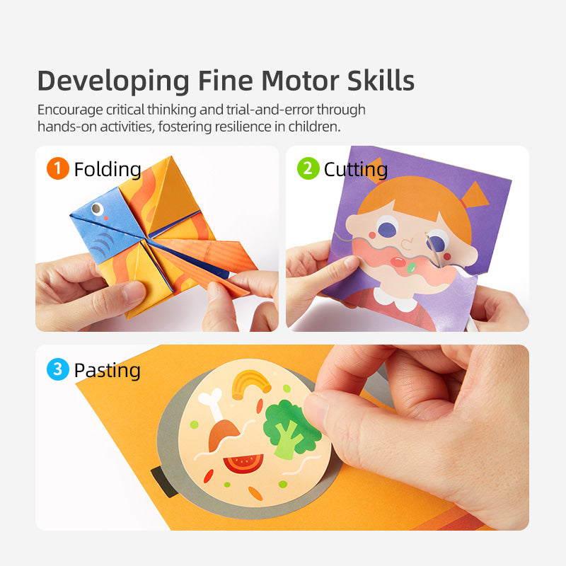 - Level 3 (5Y+): Challenges children with cutting and combining different stickers to create complex and detailed artworks.