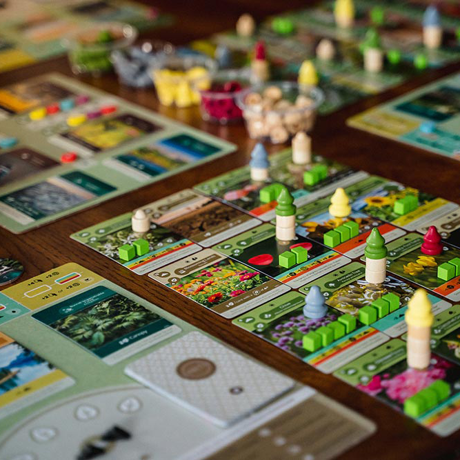 Earth is an engine and tableau builder for 1 to 5 players with simple rules but tons of strategic possibilities. With its encyclopaedic nature and the enormous number of unique cards and combinations, every single game will allow you to discover new synergies and connections, just as our vast and fascinating world allows us to do!