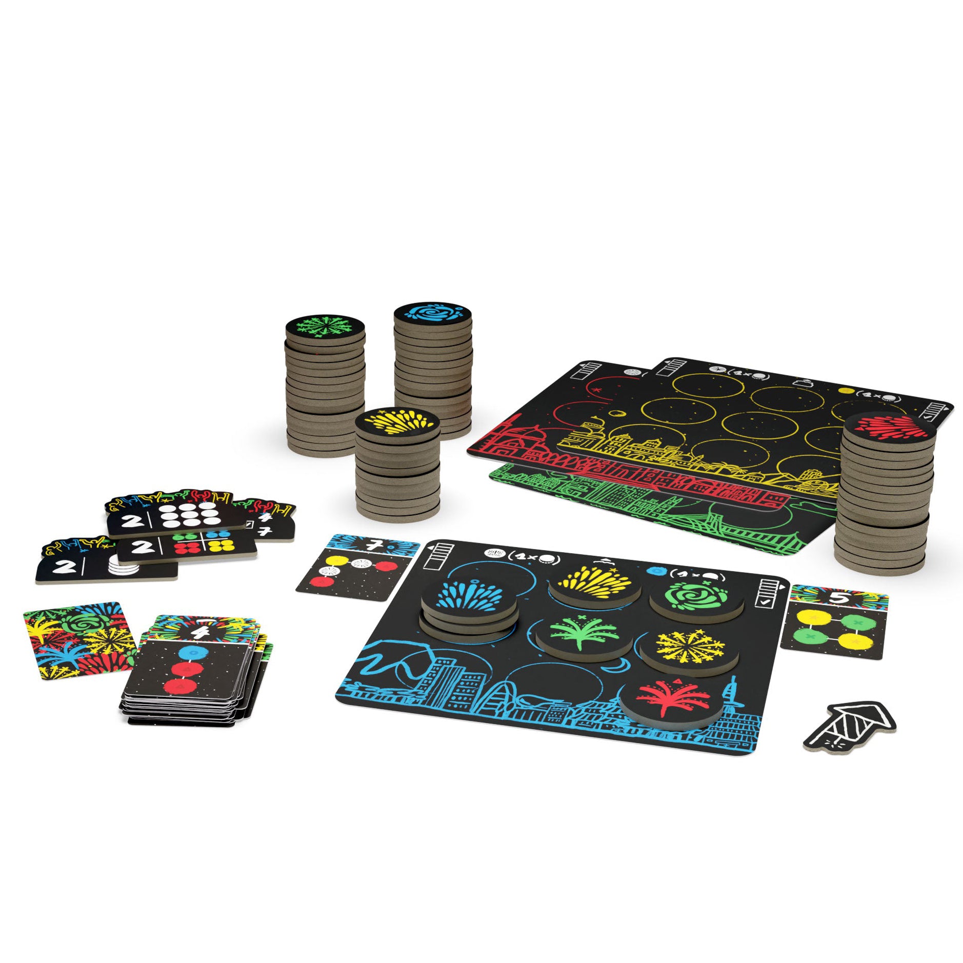 In Festival, you select tiles to place on your tableau to create the most impressive and beautiful fireworks display possible...and of course, score the most points! This tile-placement and tile-stacking game will have you choosing to either take and place a firework tile on your turn, or select an objective card to complete for points at game's end.