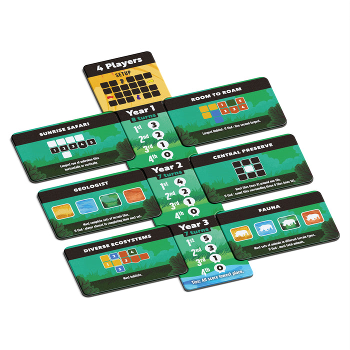 In Habitats, you'll drive your jeep around the board to pick up tiles for your preserve. Place them carefully to score.