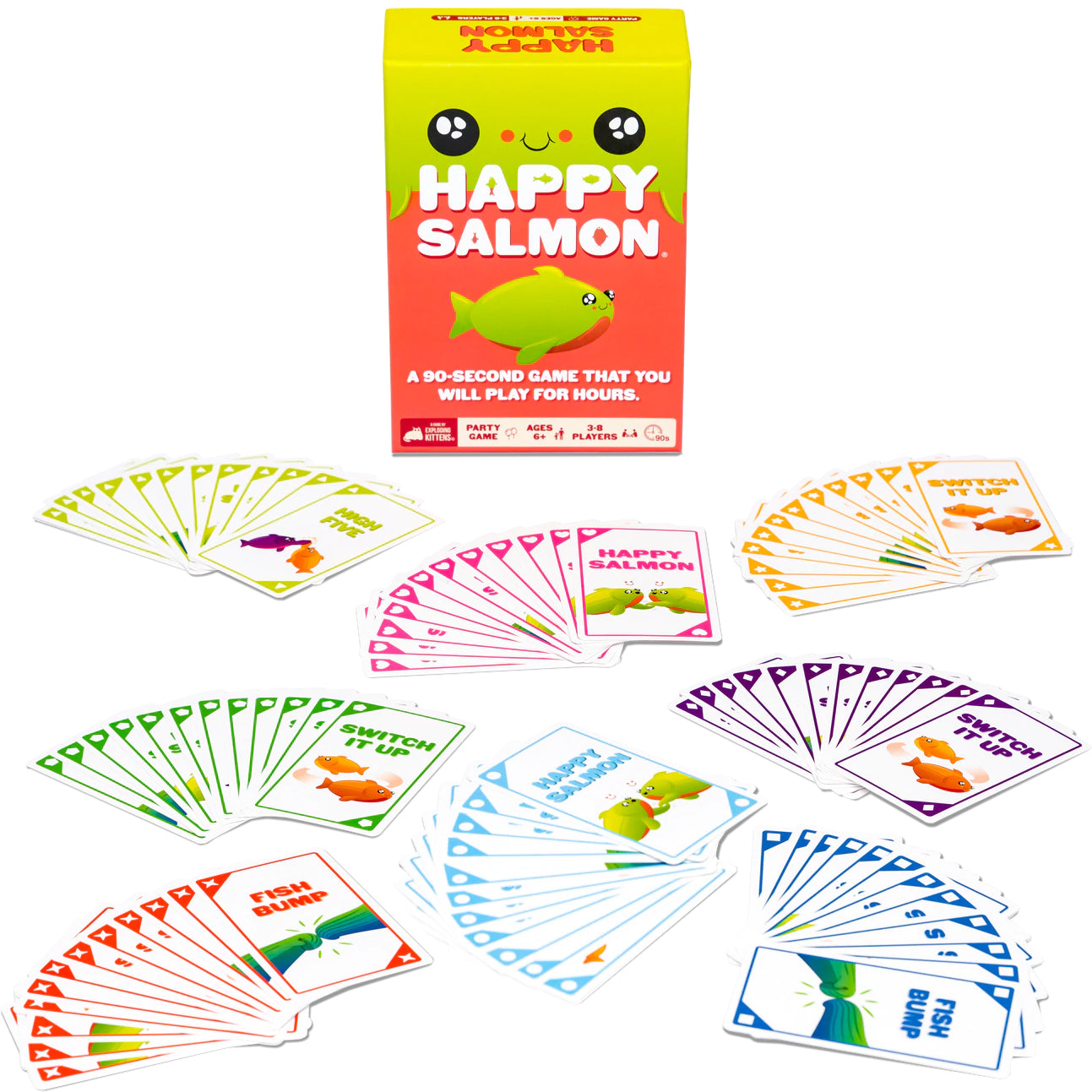Happy Salmon is a party game for 3 to 8 players that you'll learn how to play in seconds, but you'll keep playing for hours. It's fun, and funny, and so irresistible that it will draw a crowd anywhere you play.