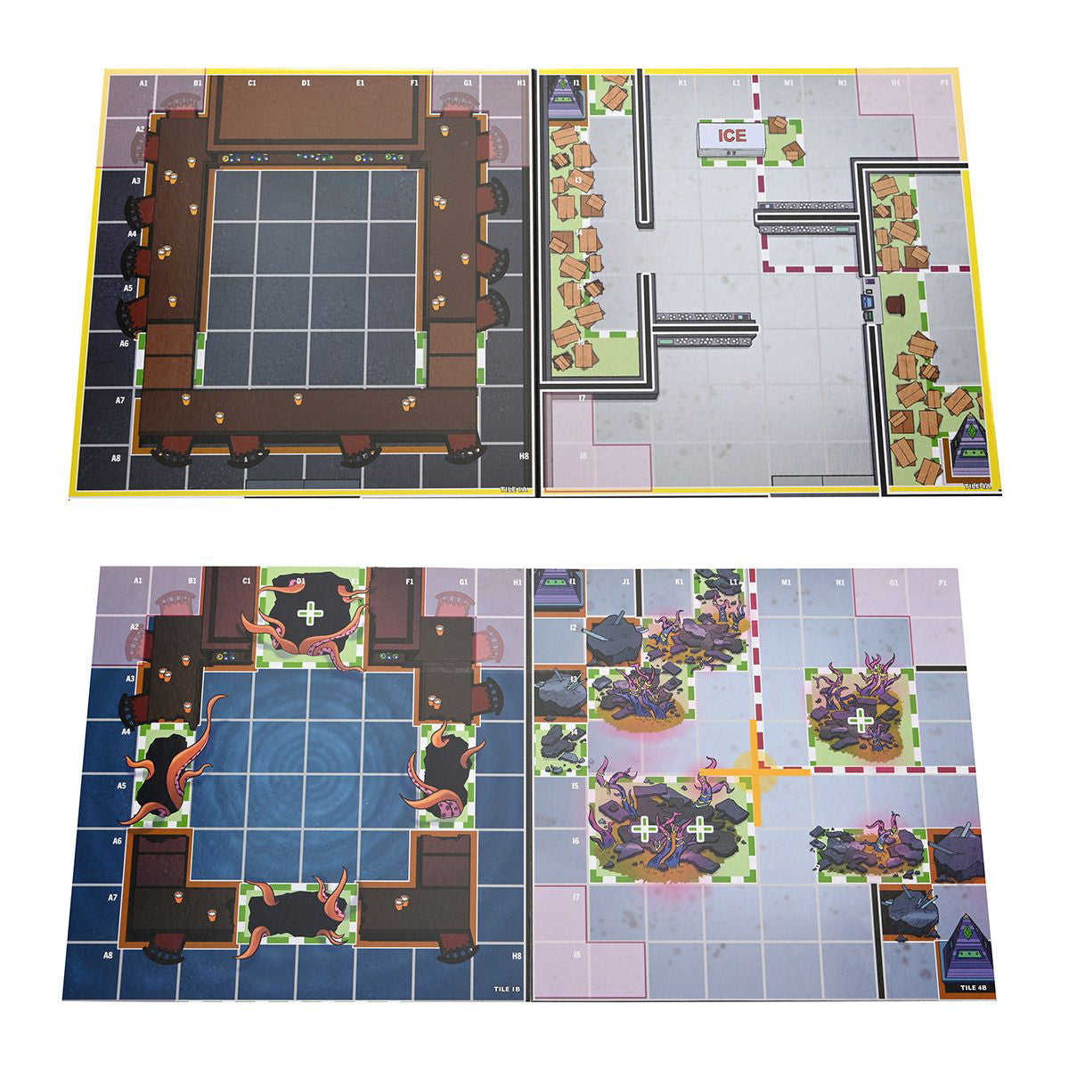 - 6 Double-Sided Thick Map Tiles. No folds!