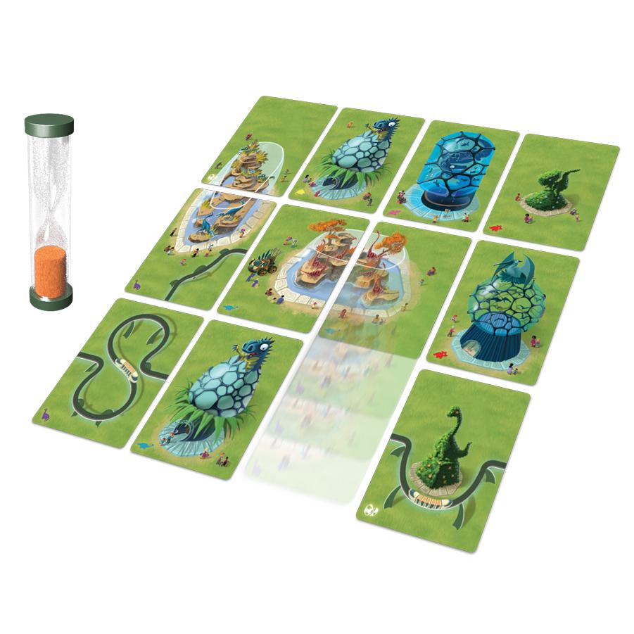 After drafting your favorite features, you’ll have to organize them in your zoo—but things won’t always go as planned! Race against time by frantically sliding the cards one at a time to match up features and optimize your zoo’s layout. Complete dinosaur enclosures, connect monorail tracks and maintain your attractions to score points. The zoo with the best layout will score the most points!