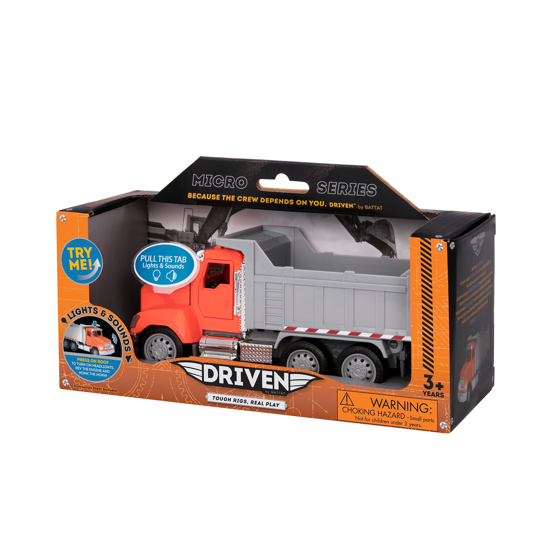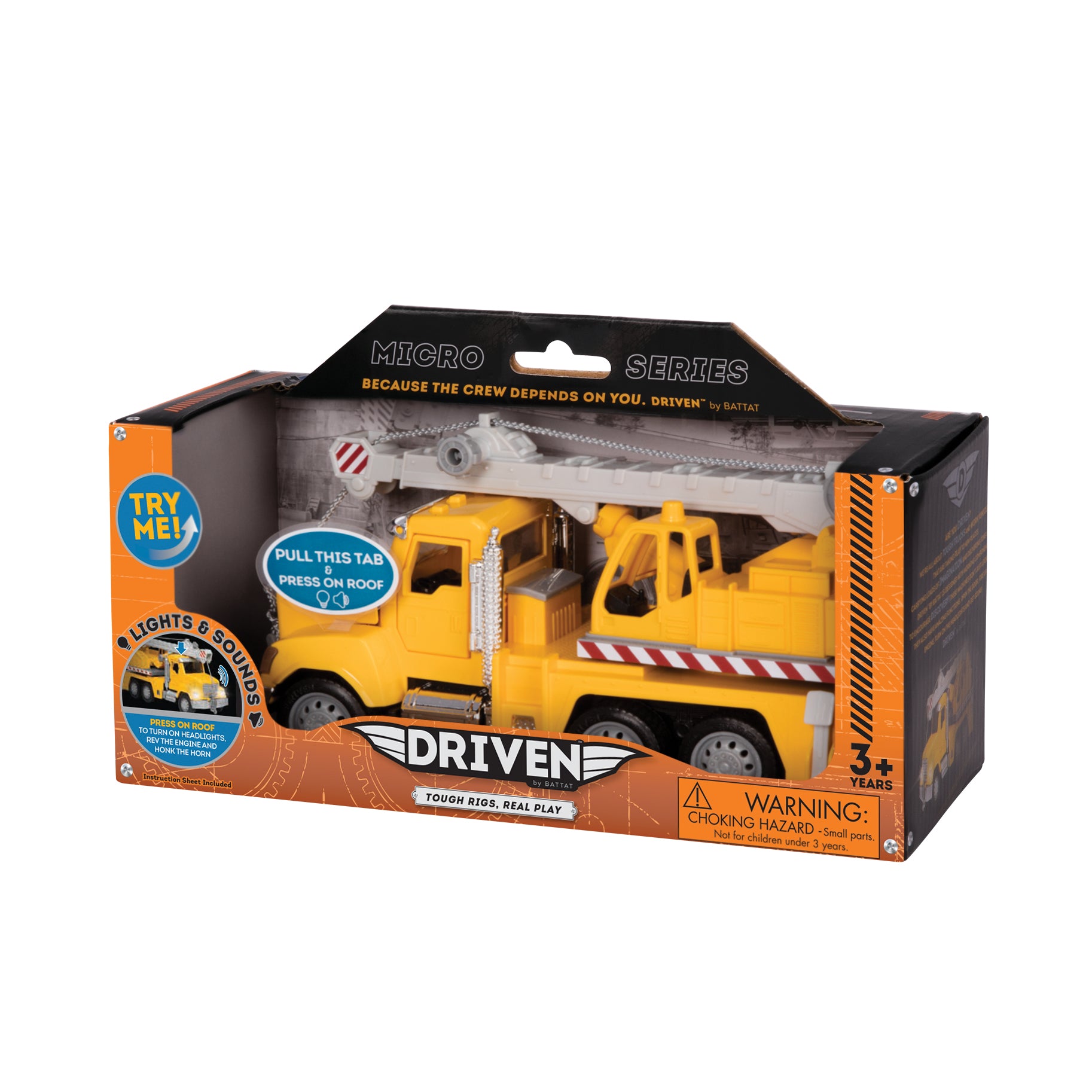 Big day at the construction site? The Micro Construction Fleet from DRIVEN by Battat is here to help! This trio of toy construction vehicles includes a sturdy dump truck, a backhoe loader with two scoops, and a mighty crane truck that can reach the sky! Each of them have so many details, lights, and sounds to discover! Use the backhoe loader to dig soil, sand, or other toys from the playroom. Then, dump the contents into the dump truck and drive. Need to move a heavy load? Extend the crane on the crane truck, then use its hook to lift and pull whatever you need! Together, this dependable crew can get any job done. Recommended for kids 3 years old and up. Remember, stay DRIVEN because the crew depends on you!