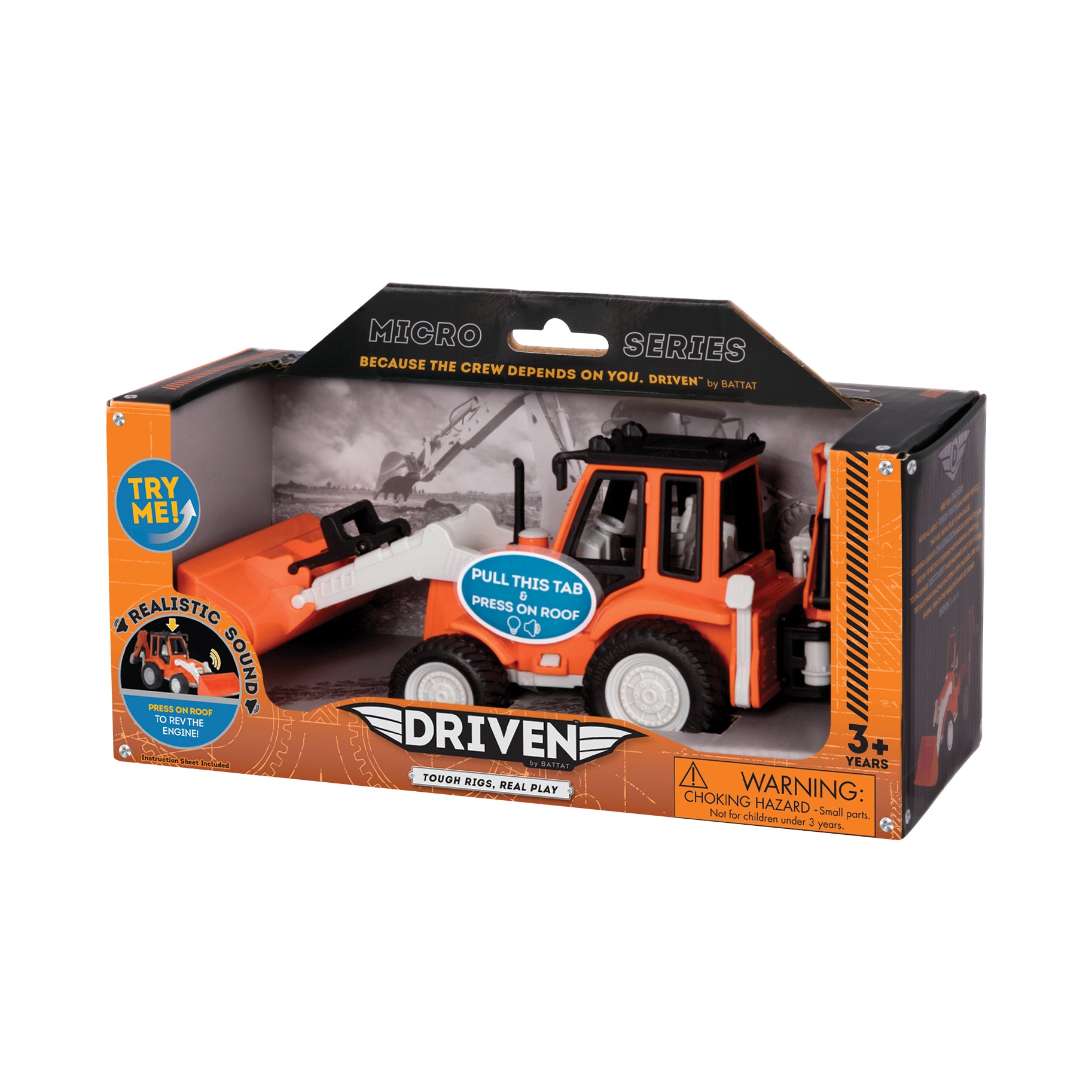 Dig it up and dump it out with DRIVEN by Battat’s Micro Series Backhoe Loader! This toy construction truck for kids is incredibly detailed, so it looks just like the real thing. The fully functional front-loading shovel scoops, and the rear excavator arm swivels for maximum digging capabilities. Need extra support for a tough job at the sandbox? Just unfold the support legs! This toy excavator truck even has a realistic-sounding engine to enhance your imaginary playtime. Remember to stay DRIVEN, because the crew depends on you!