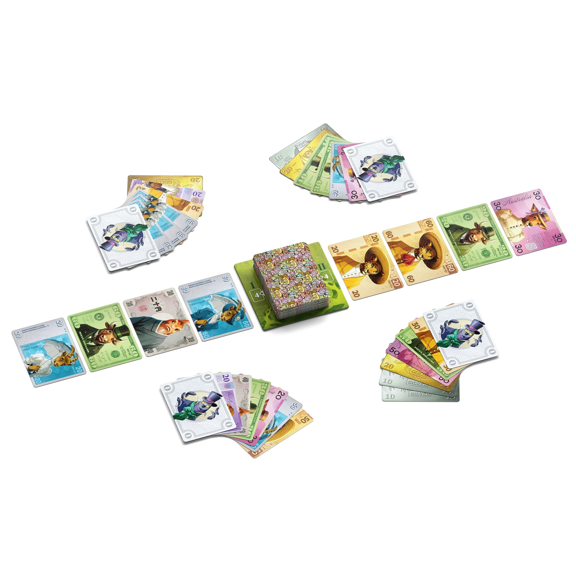 - 63 Money Cards (7 Currencies, 9 Cards Each)