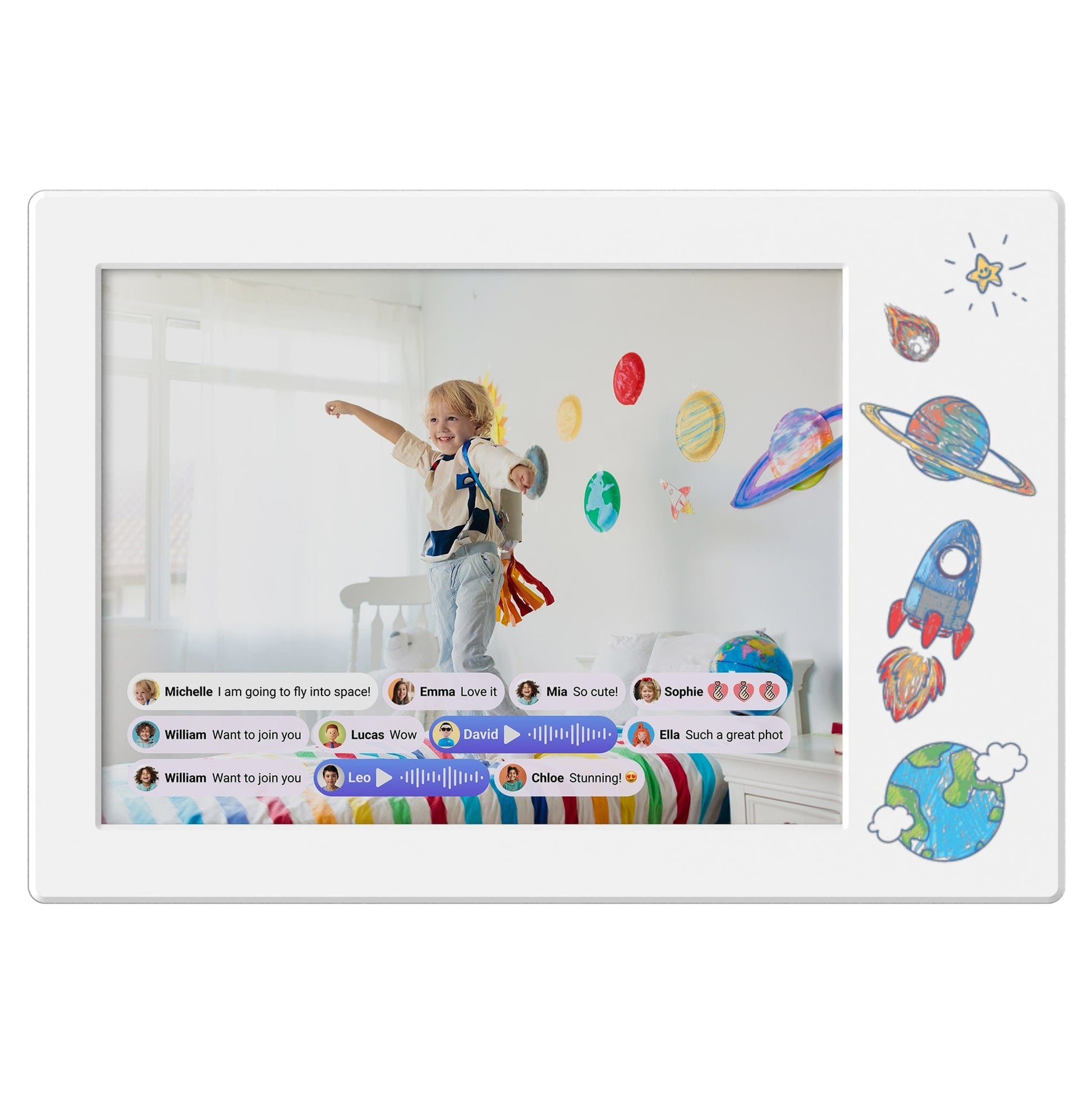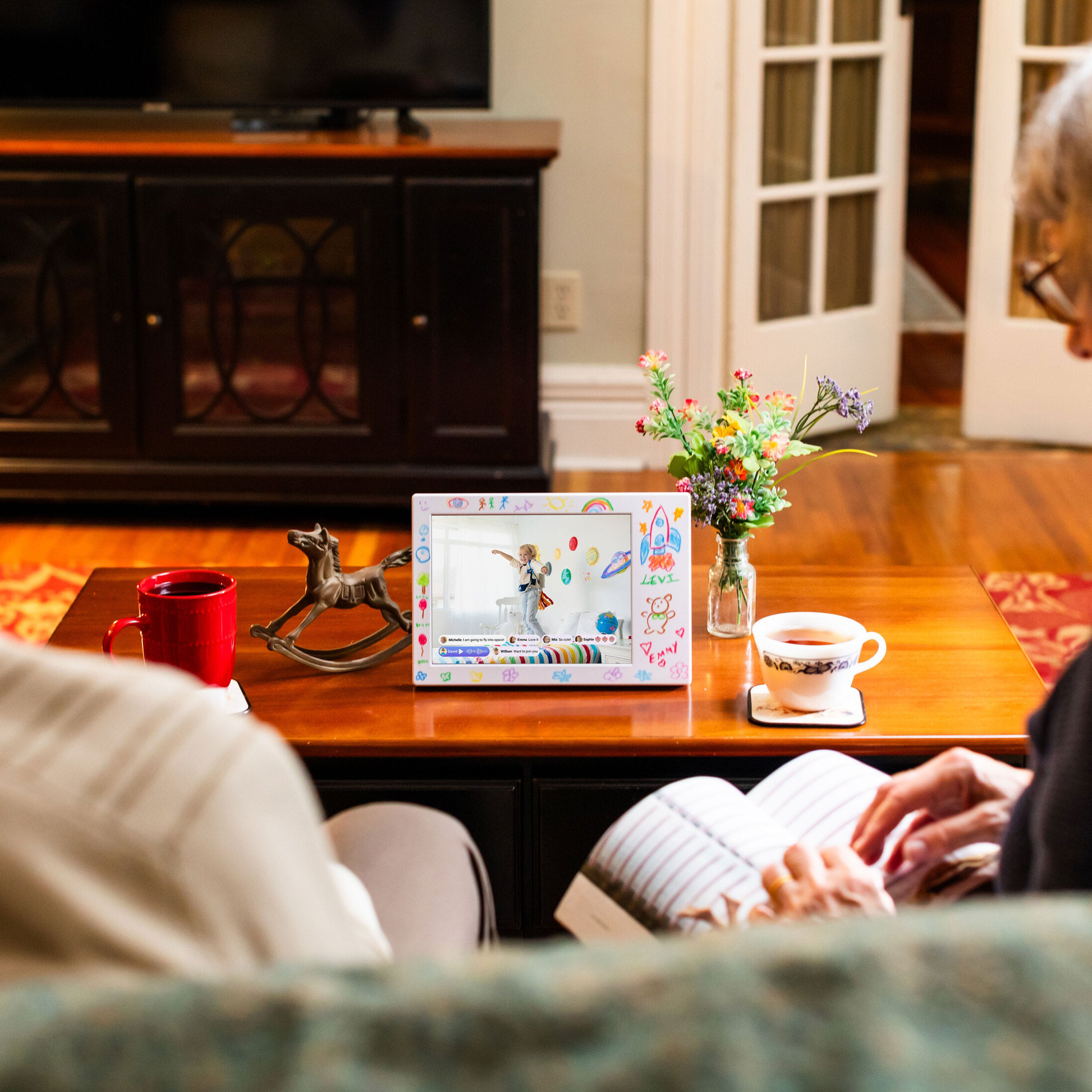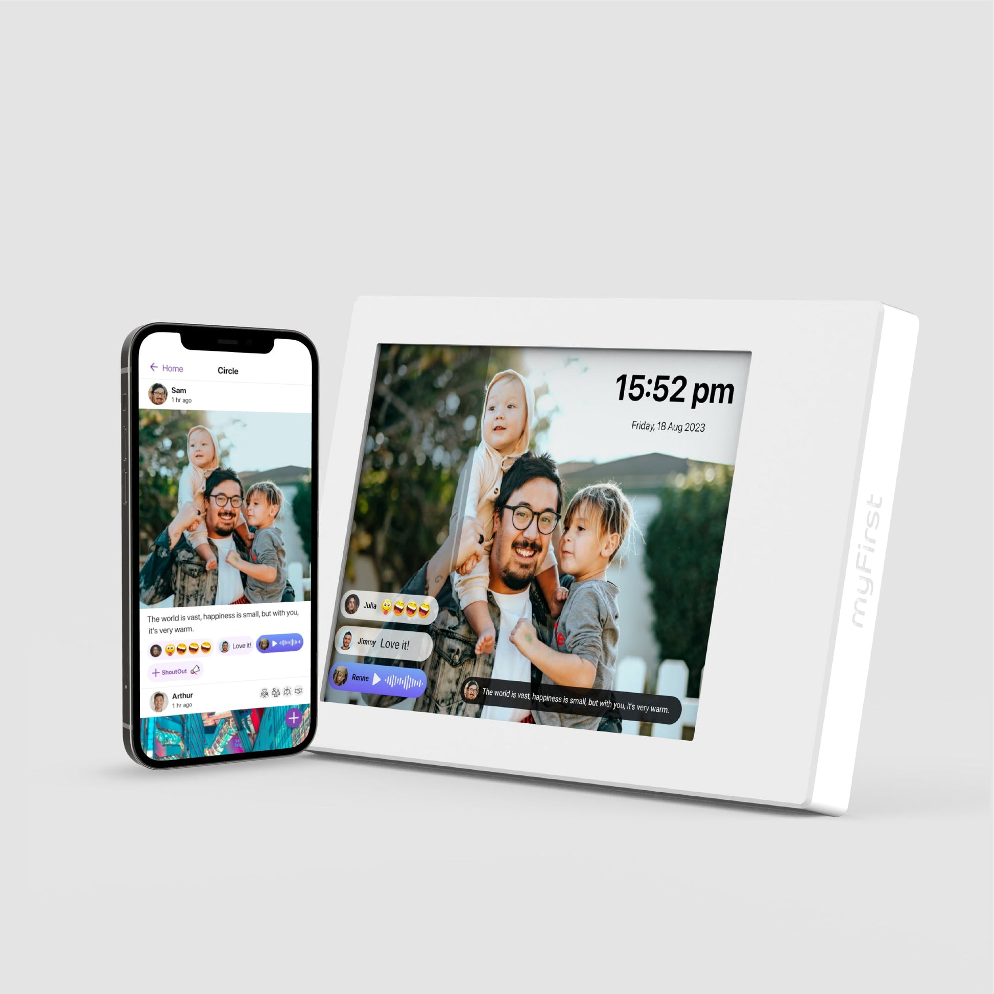 Designed to bring loved ones closer together, the myFirst Frame Doodle syncs to other myFirst devices and displays a feed of content shared by loved ones.