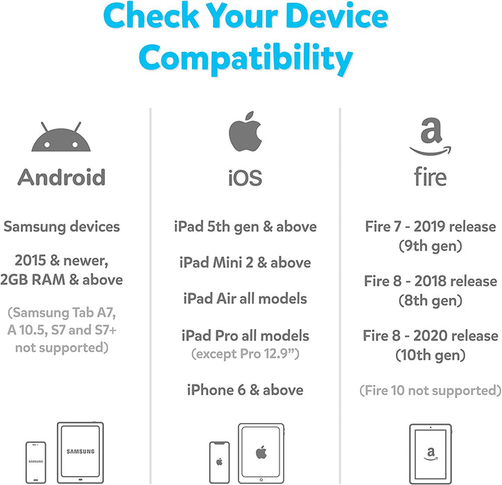 - Tablets - Samsung (except Tab A7, S7, S7 Plus, A 10.5)