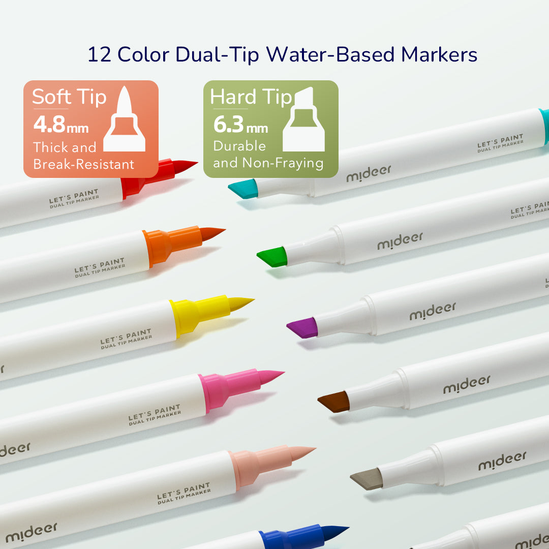 - Versatile Dual-Tip Markers: Includes 12 dual-tip markers with soft and chisel tips for varied artistic effects and techniques.