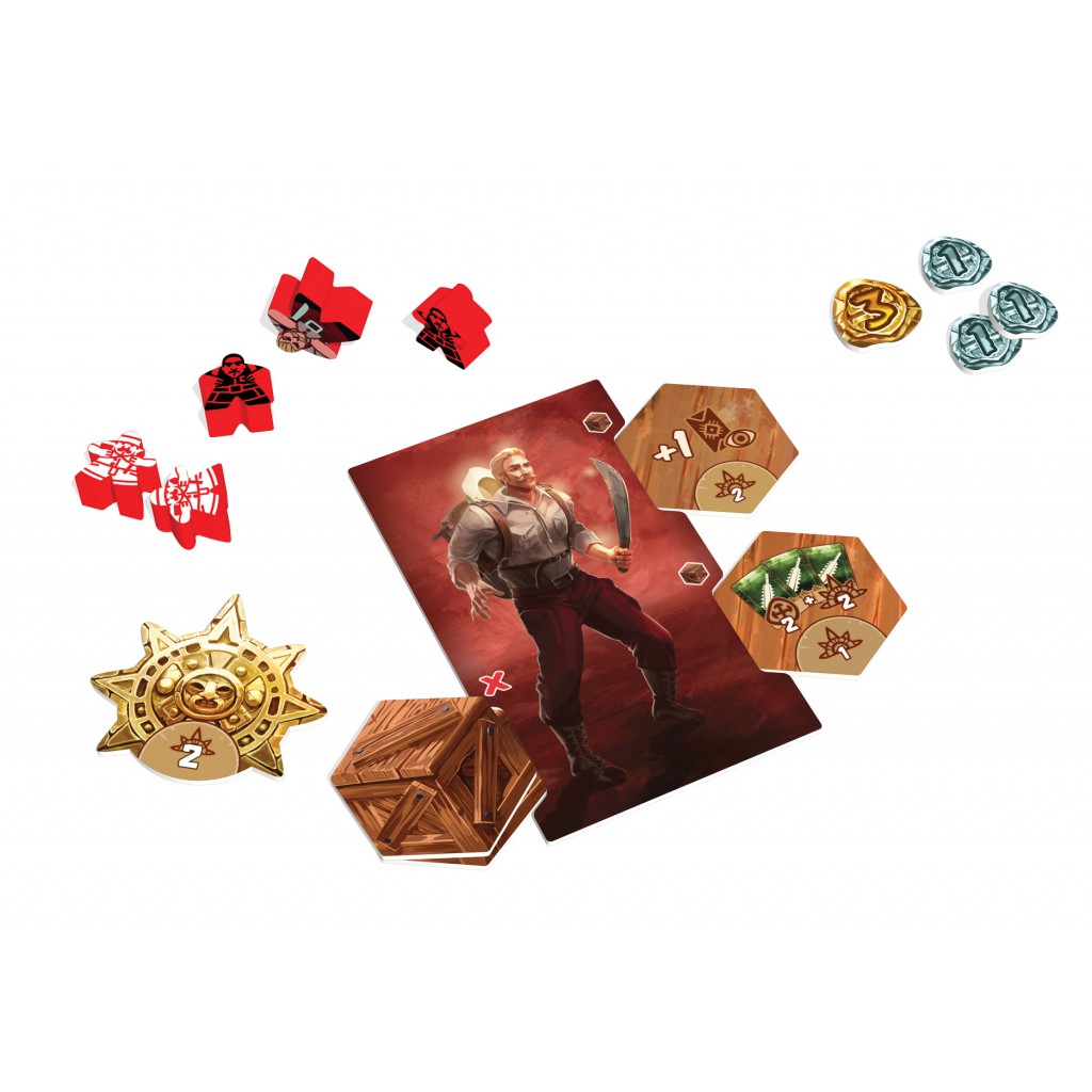 - 1 game board - 5 big meeples - 30 meeples - 10 wooden discs - 75 artifact cards - 24 improvement tiles - 5 character tiles - 42 tokens - 8 solo cards - 1 Ship tile - 1 power tile - Rules