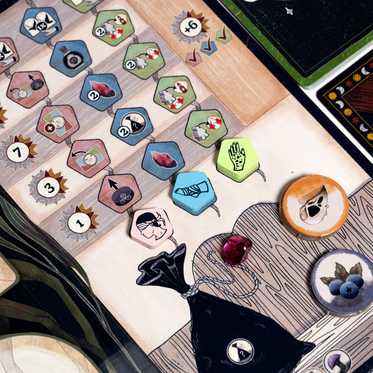 Septima is a competitive, high-interaction strategy game of witchcraft. As the leader of a coven, you strive to overcome your rivals to become the worthy successor of Septima, the High Witch. You play through four Seasons, each consisting of five rounds, to gather a powerful coven of Witches and gain enough Wisdom points to become the worthy successor of the High Witch. You will accumulate Wisdom as you practice your craft in the superstitious town of Noctenburg: gather ingredients, brew powerful Potions, perform Rituals, heal the afflicted, and work in the shadows to turn suspicion and anger into support and acceptance.