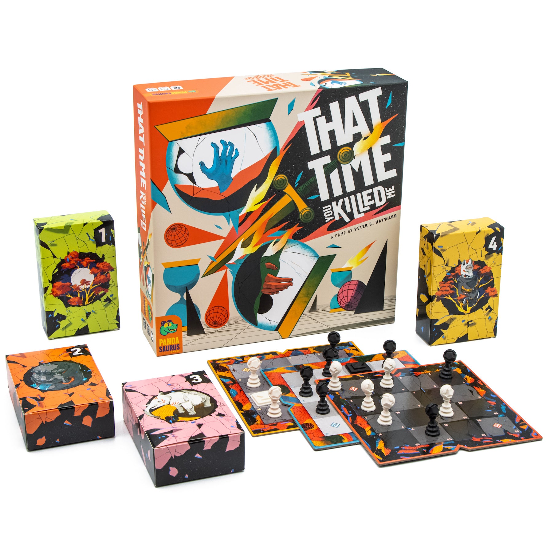 That Time You Killed Me is a narrative game that introduces new scenarios with unique rules and components as you play. As with any game about mucking about across time, you must play through this content in a strict, unalterable order. Play through 4 different Chapters, each with its own rules and components and increasing difficulty!