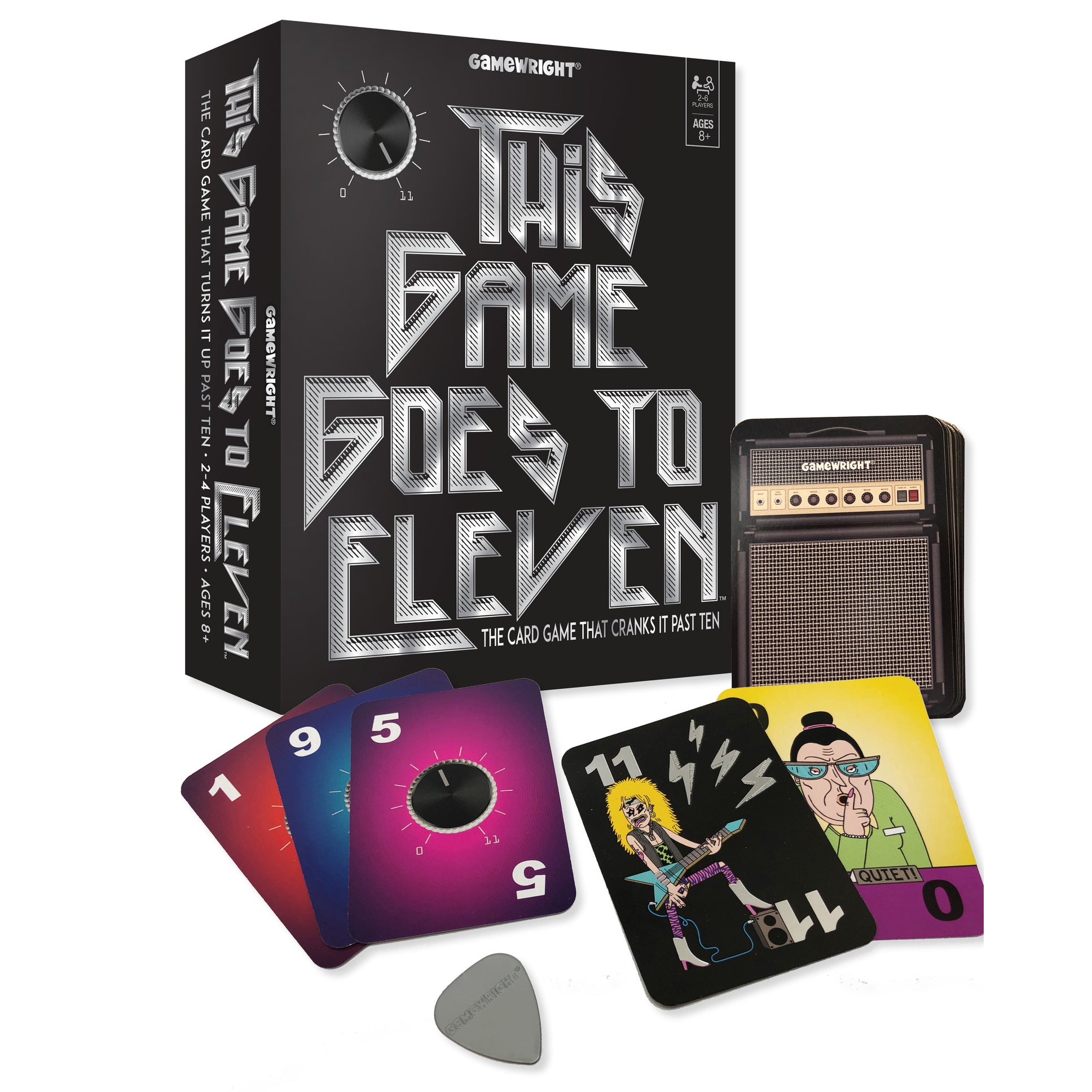 Turn it up! In this fully-amped card game, the goal is to crank up the volume and stick other players with cards. Play number cards to a center pile, adding up the total along the way. Make the pile hit exactly 11 and hand the whole heap to another player. But crank it too loud and you get stuck with the headache! End the game with the fewest cards and you totally rock!